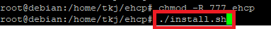 12. Ubah hak akses file ehcp, dengan cara ketik perintah chmod 777 ehcp13. Jalankan instalasi ehcp, dengan ketik perintah ./install.sh, ikuti petunjuk instalasi ehcp14. Tekan enter untuk memulai proses instalasi